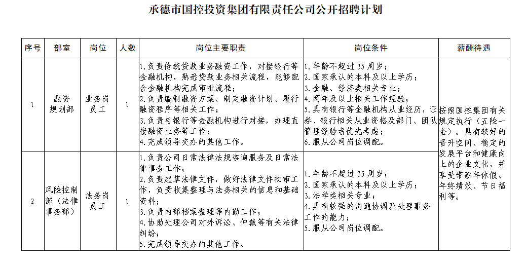 满冠体育(中国)官方网站(以下简称“满冠体育(中国)官方网站”)成立于2015年9月,是市委、市政府按照“市场化配置、集约化整合、企业化经营、资本化运作”的原则予以组建的国有独资企业。满冠体育(中国)官方网站隶属于承德市人民政府管理,注册资本3亿元人民币。现因满冠体育(中国)官方网站业务发展和工作需要,委托承德鸿雅伟业人力资源管理咨询有限公司(简称“鸿雅人资”)面向社会公开招聘工作人员,具体招聘信息公告如下: