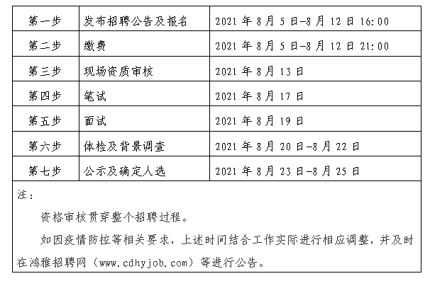 2021年8月5日至 2021年8月12日16:00 在鸿雅招聘网(http://www.cdhyjob.com/)、鸿雅微信公众号、满冠体育(中国)官方网站官方网站等发布招聘公告。